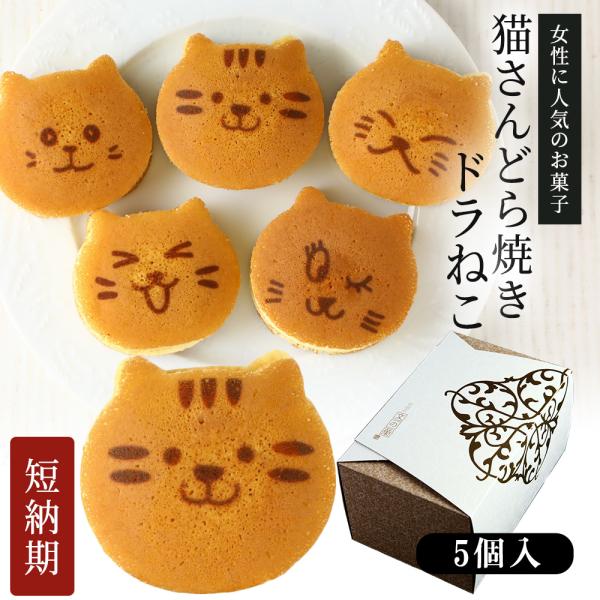 猫さんどら焼き ドラねこ 5個入り 小豆餡 ギフト仕様 ネコのお菓子 短納期 名入れ メッセージ入りお菓子の世田谷 文の菓 ふみのか